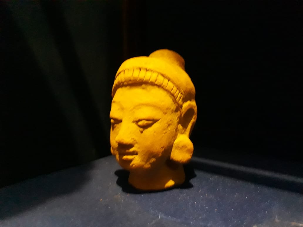 Terbuat dari tanah liat, bentuk bulat bertutup, glasir warna putih, retak seribu, motif kupu-kupu, kepompong, kait, garis-garis vertikal dan les melingkar warna biru. Cina, Dinasti Ming, abad 15-17 M.