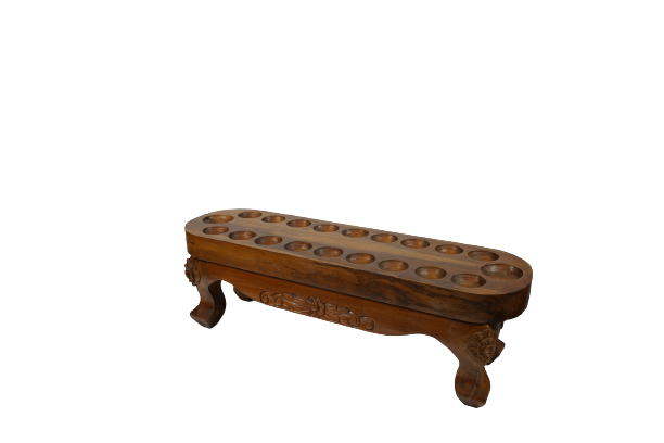 Papan dengan 14 lubang kecil yang ditata memanjang dan saling berhadapan dengan dua lubang besar di ujung kanan dan kiri papan dakon. Bermain dakon juga bermanfaat untuk melatih ketekunan, ketepatan, kejujuran, dan kesabaran.