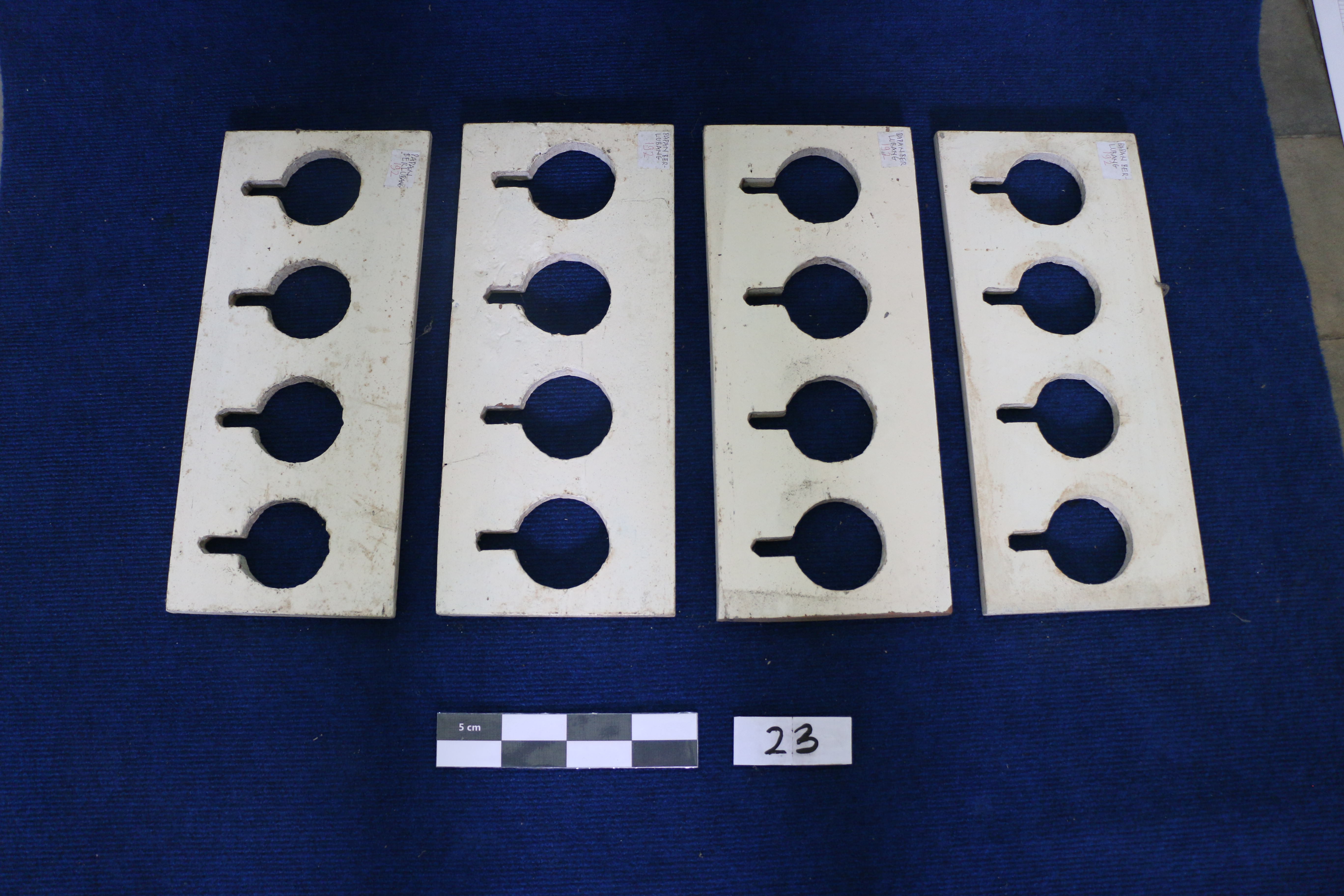Koleksi merupakan dentary dari hiu Carcharhinus sp. Bagian yang terkonservasi adalah akar gigi dan mahkota gigi. Mahkota gigi didominasi oleh warna coklat kemerahan. Terdapat gerigi yang sangat tipis dibagian samping mahkota gigi. Akar gigi berwarna coklat kemerahan. Akar gigi memiliki lengkungan (root notch) yang cukup jelas terlihat. Terdapat nutrient pore pada akar gigi.