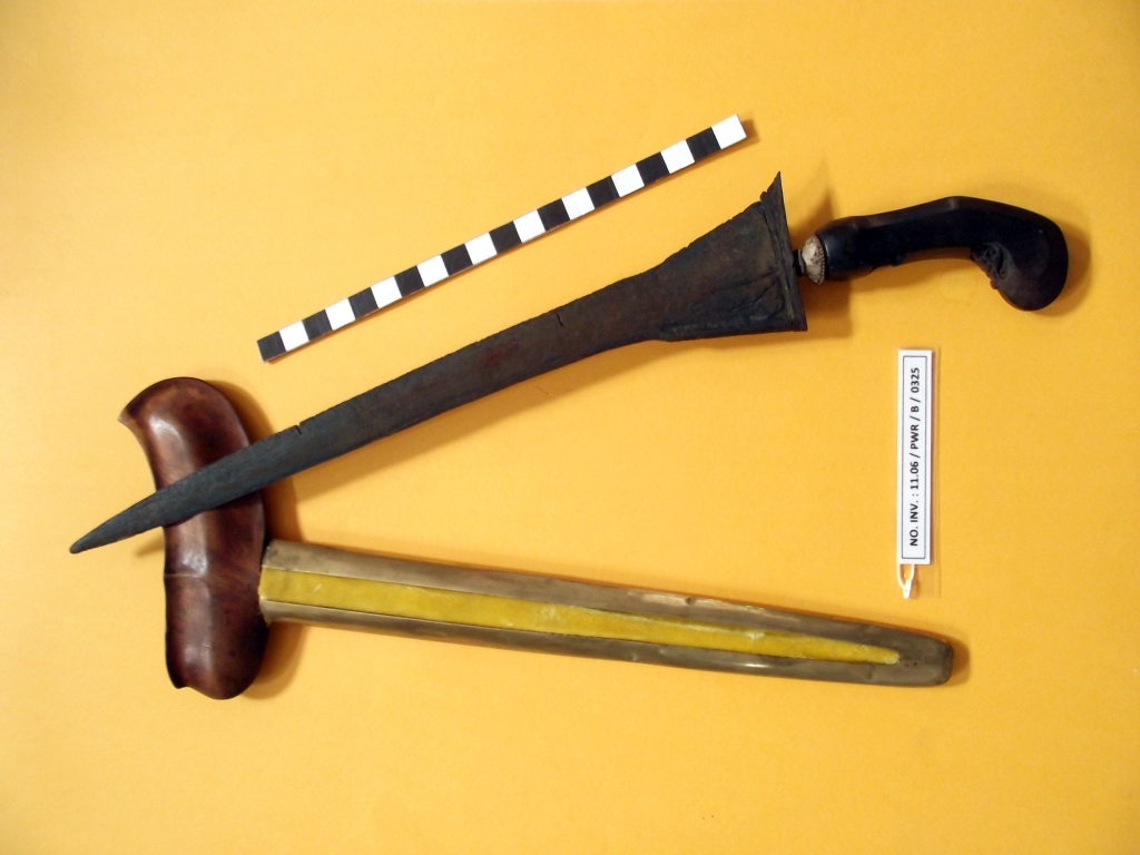 koleksi merupakan gigi hiu yang mengkonservasi bagian mahkota gigi dan sebagian akar gigi. Mahkota gigi didominasi warna abu-abu dengan cutting edge tipis di pinggirnya. Bagian ujung mahkota gigi (tip crown) terlihat sudah patah. Gigi terlihat memiliki indikasi melengkung mengarah ke sisi lingual. Akar gigi kondisinya sudah patah sehingga lapisan dalam gigi dapat terlihat.