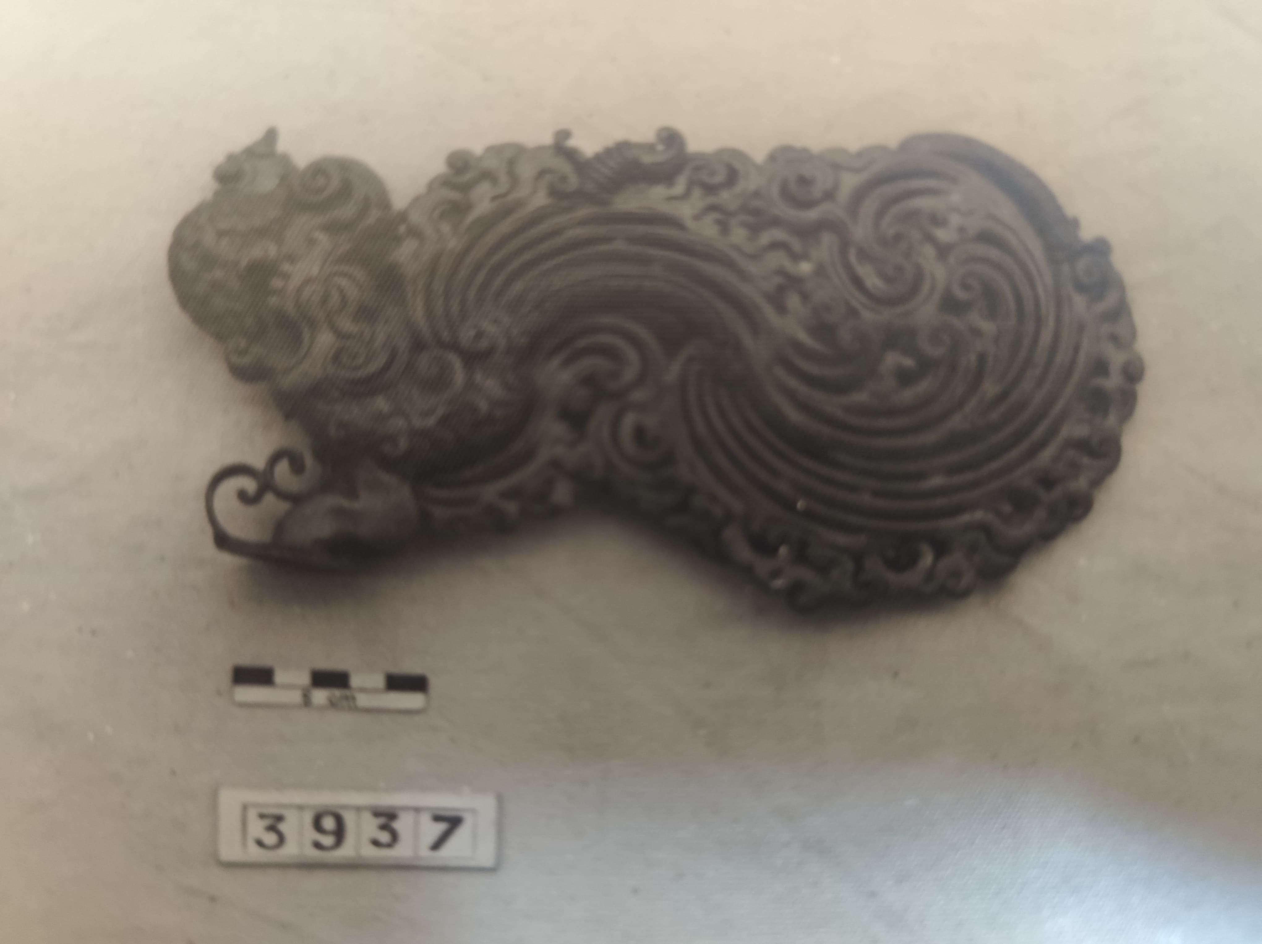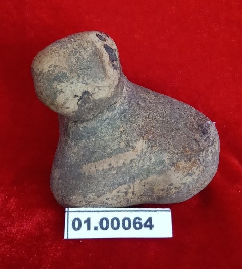 Figur batu dengan bentuk yang tidak teridentifikasi. Bagian atas patah. Secara umum, teknik pembuatannya masih menggunakan peralatan yang sangat sederhana.