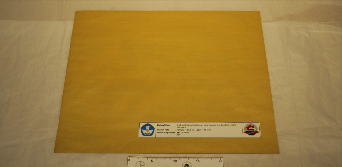 Koleksi ini berupa foto berbentuk persegi panjang dan berwarna hitam putih. Pada bagian kanan atas foto, terdapat stempel Koleksi Museum Perumusan Naskah Proklamasi dengan tinta berwarna hitam. Terdapat 10 anak-anak yang terlihat jelas pada foto, 9 anak membawa senjata dan mengenakan songkok, serta 1 anak mengibarkan bendera Jepang. Beberapa anak mengenakan kaus kaki dan sepatu, sisanya bertelanjang kaki. Kegiatan yang dilakukan yaitu upacara menghormati bendera Jepang. Latar foto berupa bangunan bergaya Indis dengan banyak jendela. Pada bagian bawah kanan foto, terdapat tulisan angka "17". Selain itu, di bagian belakang kiri bawah foto, terdapat label dengan tulisan "No. Reg No. Inv 883.09.1.606". Kondisi koleksi foto utuh tanpa kerusakan.