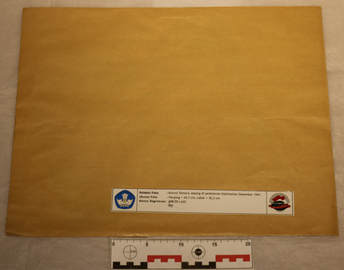 Foto berbentuk persegi dengan orientasi foto lanskap. Foto berwarna hitam dan putih. Foto memuat sekumpulan tentara Jepang mengenakan seragam militer dengan dilengkapi dengan topi dan senjata laras panjang. Foto tersebut berlatar tempat di pedalaman Kalimantan pada Desember 1941. Pada foto tersebut, terlihat tentara Jepang sedang berjalan secara berbaris. Bagian depan foto terdapat stempel berwarna cokelat bertuliskan "KOLEKSI MUSEUM PERUMUSAN NASKAH PROKLAMASI" di sisi kanan bawah. Resolusi foto pecah.