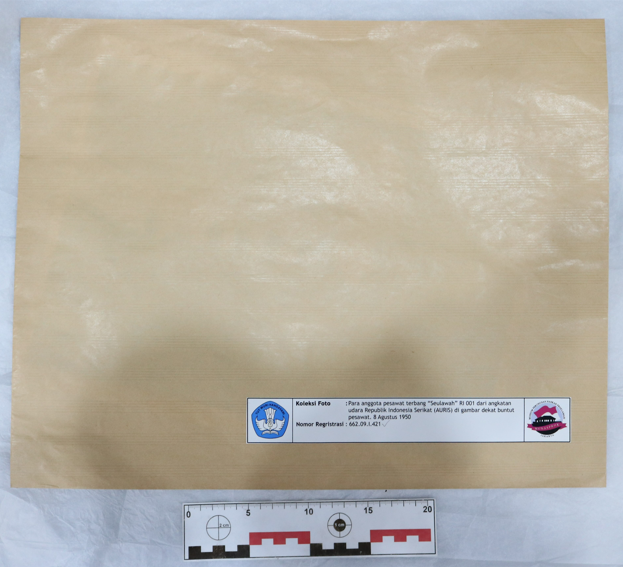 Foto berwarna hitam putih dengan posisi lanskap. Foto menampilkan para anggota pesawat terbang "Seulawah" RI 001 dari Angkatan Udara Republik Indonesia Serikat (AURIS) pada tanggal 8 Agustus 1950. Foto menggambarkan 10 orang anggota yang mengenakan pakaian angkatan udara.