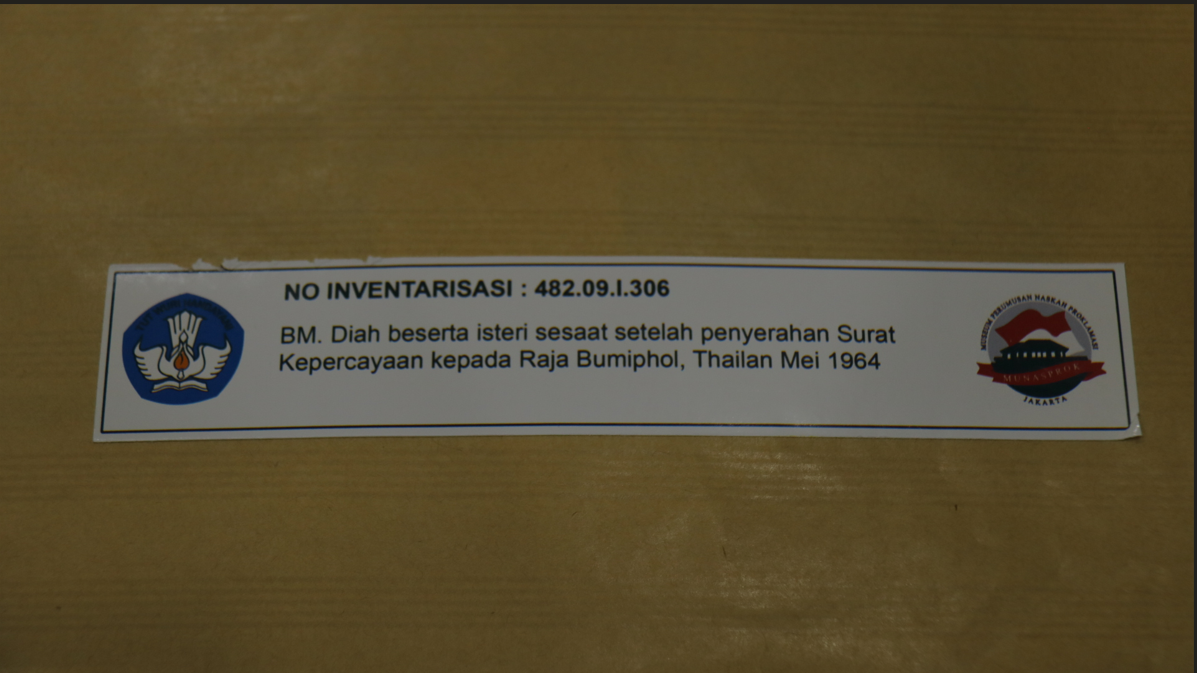 Di dalam foto ini, B. M. Diah (Kanan) mengenakan tuksedo berwarna hitam dengan peci berwarna senada. Berdiri di samping B. M. Diah, adalah istrinya, Ny. Herawati Diah, mengenakan pakaian kebaya. Keduanya berpose ke arah kamera dan menampilkan ekspresi senyumnya. Kondisi koleksi ini utuh dan baik. (Terdapat dua foto)