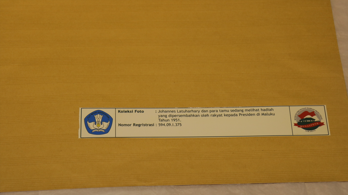 Johannes Latuharhary dan para tamu sedang melihat hadiah yang dipersembahkan oleh rakyat kepada Presiden di Maluku tahun 1951
