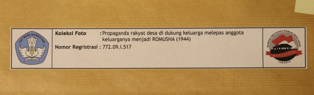 Foto berbentuk lanskap persegi panjang berwarna hitam dan putih. Foto memuat gambar beberapa orang. Foto tersebut terlihat beberapa masyarakat melambaikan tangan untuk melepas anggota keluarganya menjadi ROMUSHA. Terdapat satu orang berjalan di depan masyarakat. ia mengenakan seragam militer dilengkapi dengan topi dan ikat pinggang. Foto berlatar tempat di sebuah desa. Sisi belakang kertas foto terdapat label putih bertuliskan "51" di sisi kanan atas. Resolusi foto pecah.