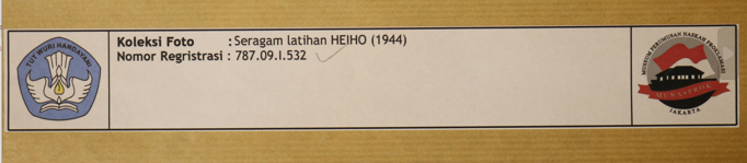 Foto berwarna hitam putih dengan posisi lanskap. Foto menampilkan pasukan tentara HEIHO mengenakan seragam latihan dan dilengkapi dengan senjata di tangannya. Kualitas foto sedikit buram.