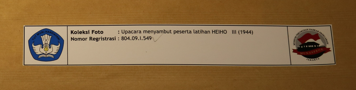 Foto berbentuk persegi panjang dengan hasil cetak berorientasi lanskap. Foto berwarna hitam dan putih. Foto memuat sekumpulan orang melakukan upacara menyambut peserta latihan HEIHO III pada tahun 1944. Foto tersebut juga memperlihatkan satu tokoh sedang hormat, dan orang-orang di hadapannya bersikap menunduk. Satu orang yang hormat mengenakan pakaian seragam militer dan topi. Foto berlatar tempat di lapangan. Sisi belakang kertas foto terdapat label putih bertuliskan "83" di bagian kanan atas dan "NUP 212" di bagian kanan bawah.