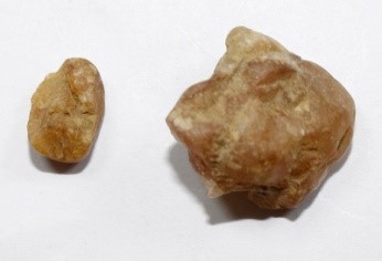 Batu yang ditemukan di Karang Agung ini jenis batu rijang berjumlah 2 buah. Dilihat dari bentuk permukaannya yang belum rata, diduga batu ini masih sebuah bahan untuk membuat manik-manik. Warnanya value putih kemerahan.