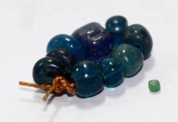 Terbuat dari bahan porselin warna dasar putih dan memiliki motif. Pada bagian luar terdapat garis lingkaran dan flora berupa bunga dan daun berwarna biru. Fragmen ini diperkirakan sebuah vas kondisi benda tidak utuh (pecahan) fragmen ini hasil temuan ekskavasi Benteng Somba Opu.