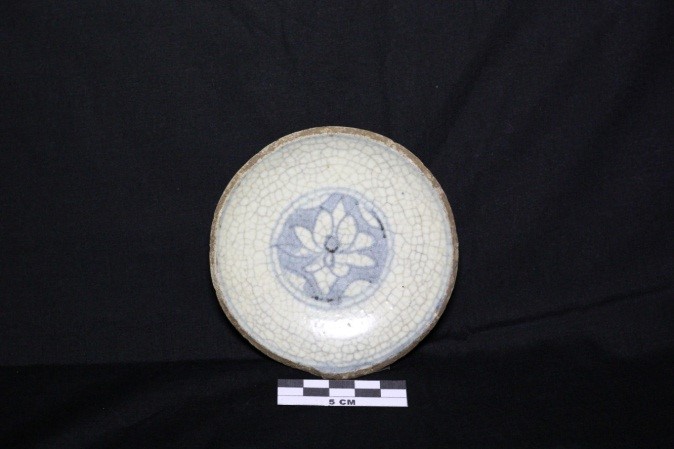 Fragmen mangkuk ini awalnya merupakan hasil temuan warga masyarakat Dusun Biting, Desa Sukorenon, Kecamatan Sukodono, Kabupaten Lumajang yang ditemukan secara tidak sengaja di halaman rumah Sdr. Ita Lestari, untuk selanjutnya temuan keramik tersebut dihibahkan ke Museum Daerah Kabupaten Lumajang atas nama Sdr. Ita Lestari pada tahun 2015. Sehingga saat ini fragmen mangkuk ini menjadi koleksi Museum Daerah Kabupaten Lumajang. Fragmen mangkuk ini diidentifikasi tinggalan dari era Dinasti Ming Cina. Frgamen mangkuk dengan motif pecah seribu pada semua permukaannya. Tersisa hanya bagian dasar mangkuk dengan bagian badan dan tepian hilang (pecah). Permukaan dinding dalam tengah berglasir putih dengan motif hias berupa bunga berwarna biru. Motif hias bunga dikelilingi oleh blok warna biru dan dibatasi oleh dua garis melingkar warna biru (double ring). Mangkuk memiliki kaki rendah dan dihiasi dua garis melingkar warna biru (double ring). Pada dinding luar mangkuk berhias dua garis melengkung yang membentuk tiga pola lengkungan dengan hias bulatan. Beberapa bagian dasar dan kaki tidak tertutup glasir (glasir tidak rata). Warna putih terlihat kusam dan warna biru tidak cerah.