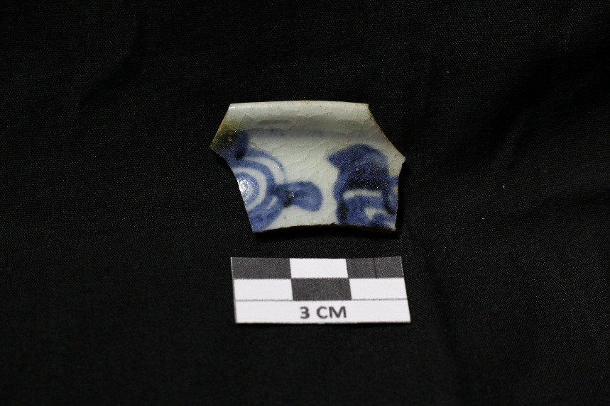 Fragmen mangkuk ini pada awalnya merupakan benda temuan hasil kegiatan ekskavasi yang dilakukan oleh Balai Arkeologi Yogyakarta pada tahun 2013. Kegiatan ekskavasi tersebut dilakukan di Situs Biting pada bagian dinding sebelah utara. Mangkuk merupakan wadah terbuka bermulut lebar dan berbadan cembung. Bagian dasar lebih kecil daripada tepian. Mangkuk yang ditemukan berupa fragmen atau pecahan bagian tepian. Tepian memiliki hiasan berupa satu garis horizontal, sedangkan pada bagian dinding dalam terdapat hiasan berupa dua garis agak melengkung bersebelahan secara vertikal. Pada bagian dinding luar terdapat hiasan berupa bulatan spiral dipadu dengan motif hias flora. Fragmen ini berasal dari Cina pada masa Dinasti Ming.