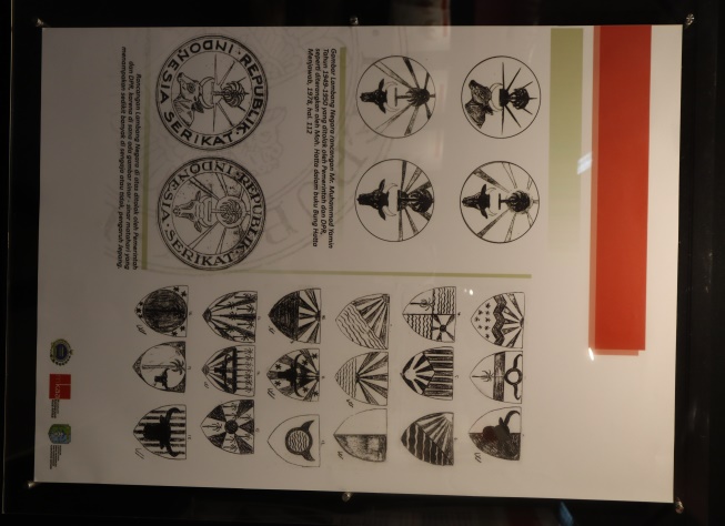 Gambar Lambang Negara Rancangan Mr. Muhammad Yamin Tahun 1949-1950 Yang di Tolak Oleh Pemerintah dan DPR Seperti di Terangkan Oleh Moh. Hatta Dalam Buku Bung Hatta Menjawab, 1978 Hal 112. Rancangan Lambang Negara Tersebut di Tolak Oleh Pemerintah dan DPR Karena di Sana Ada Gambar Sinar-Sinar Matahari Yang Menampakan Sedikit Banyak di Sengaja Atau Tidak Pengaruh Dengan Jepang.