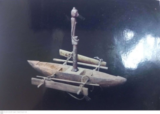 Bentuk bulat, meruncing ke bagian dasar. Bagian atas terdapat lingkaran tempat tali dan ornamen bentuk kerucut. Merupakan alat permainan tradisional rakyat.