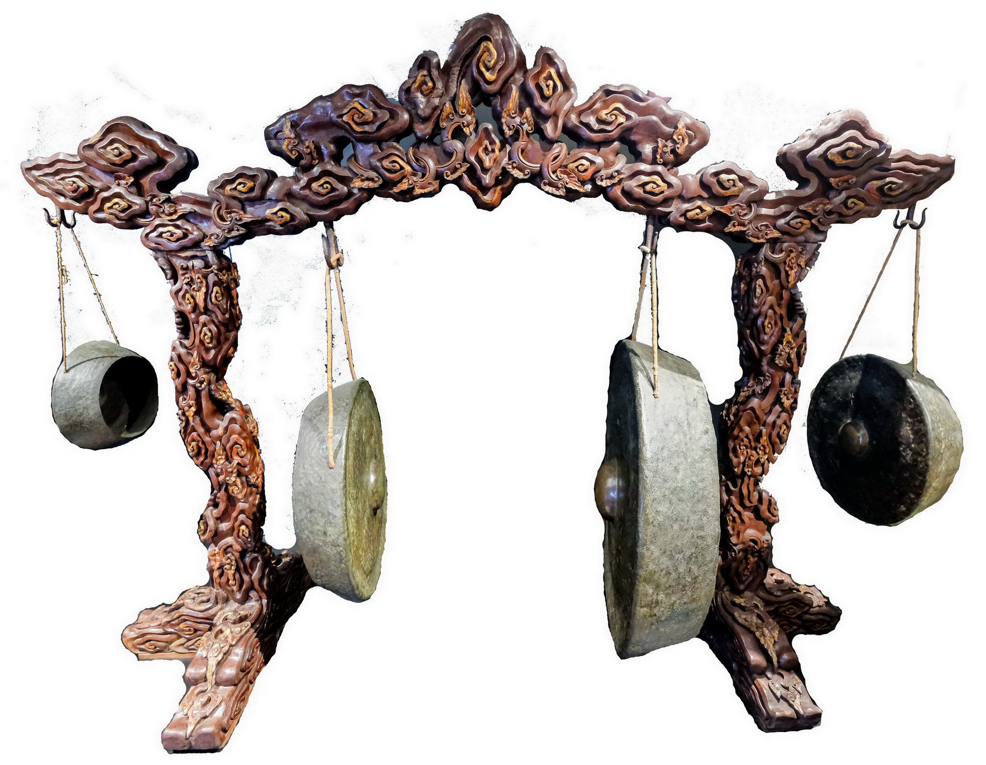 Gong sebagai penanda akhir lagu, atau sebagai penanda perubahan irama dan tempo dalam permainan gamelan. Instrumen terbesar dan paling rendah nadanya. Gayor bermotif mega mendung khas Cirebon.
