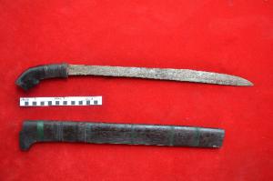 Terbuat dari kuningan, terdiri dari dua bagian yaitu wadah dan pegangan. Pada wadah terdapat motif tanaman dalam tumpal, sedangkan pada pegangan terdapat motif bunga dan bulatan-bulatan.