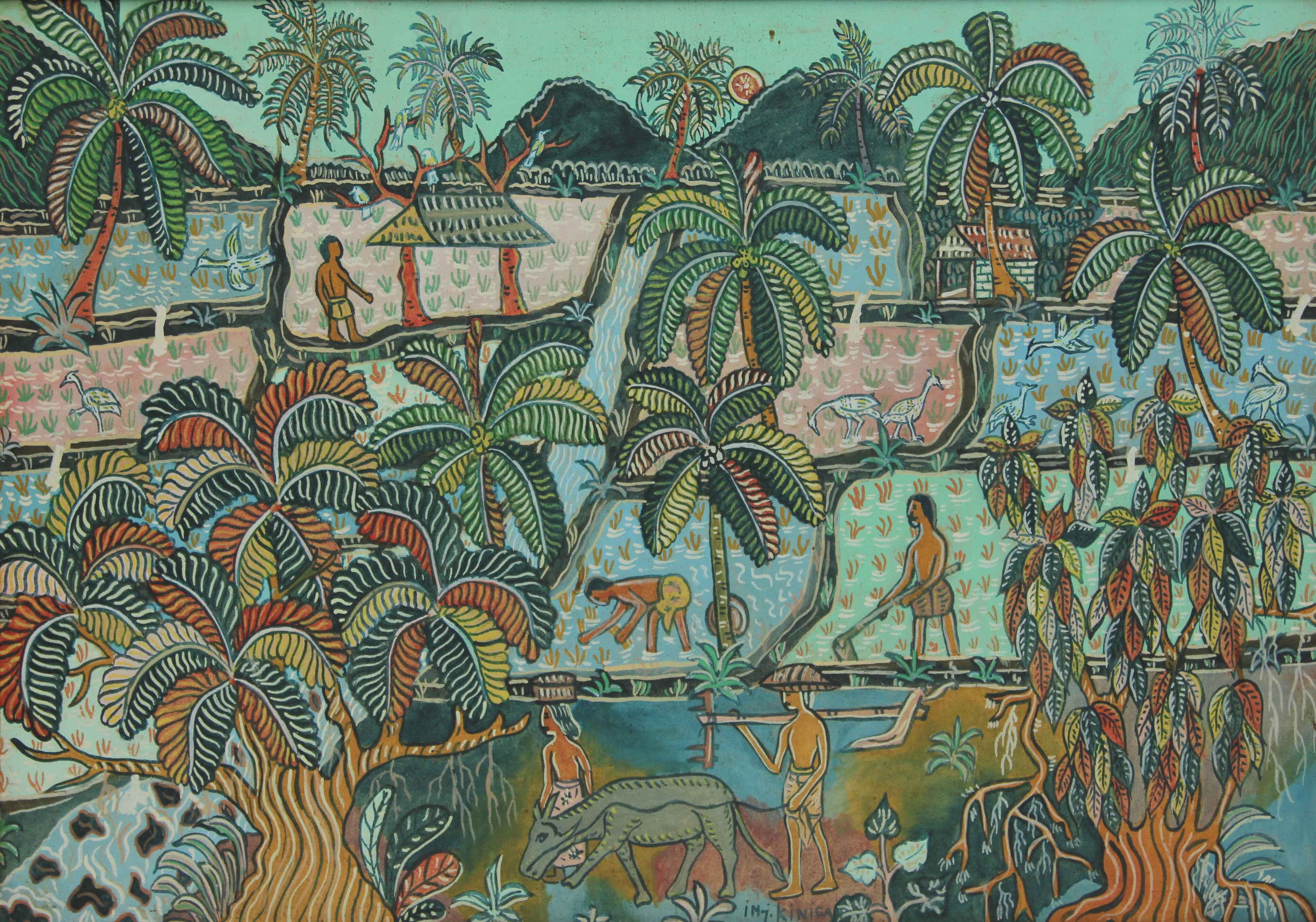 Berbahan perak, berbentuk bulat melingkar, pada kedua ujung berbentuk tangan terdapat dua garis meligkar