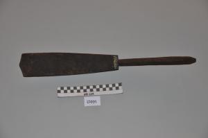 Berbahan perak, berbentuk bulat melingkar, pada kedua ujung berbentuk tangan terdapat dua garis meligkar