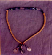 Berbahan perak, berbentuk bulat melingkar, pada kedua ujung berbentuk tangan terdapat dua garis meligkar