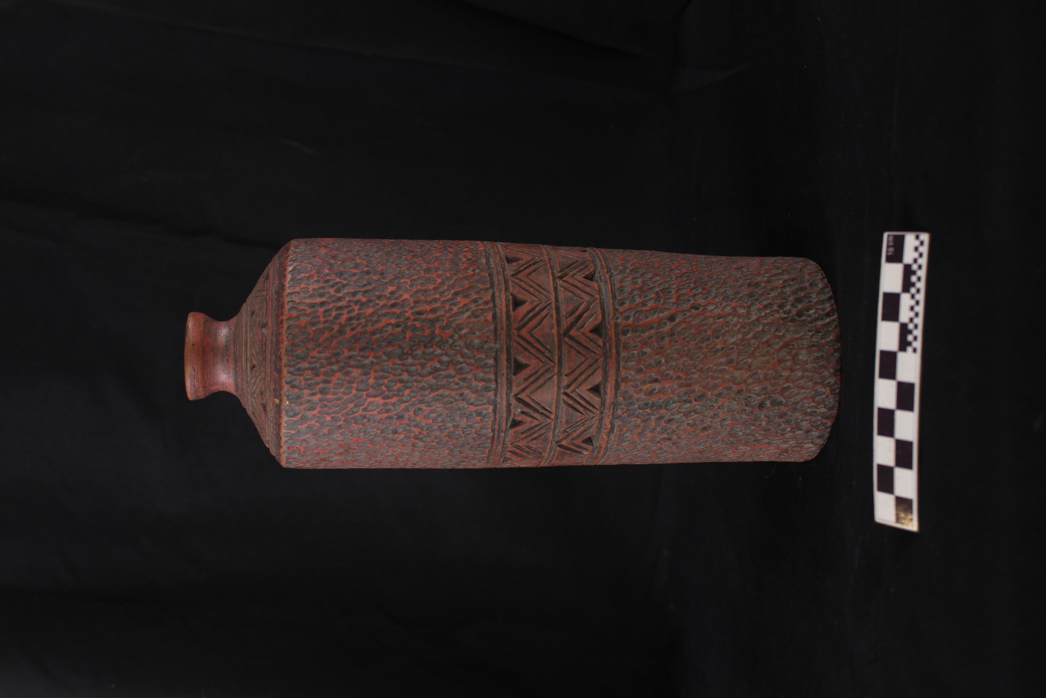 Bahan terbuat dari bahan logam dengan warna hitam dan kuning. Berbentuk bulat melingkar, mengelilingi lingkaran pada bagian tengah terdapat belahan rongga kosong yang diberi beberapa buah pelor/bulatan kecil dan logam yang berfungsi apabila benda ini digoyangkan maka akan mengeluarkan suara/bunyi yang gemersik, pada kedua belahannya dihiasi dengan motif bergerigi. Benda ini di daerah Barito digunakan untuk keperluan pengobatan dan perdukunan.