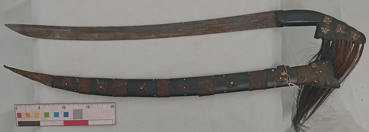 Bahan dari kuningan dengan warna kuning. Benda ini terdiri dari 8 buah berbentuk bulat. Pada bagian tengah masing-masing benda ini berlubang dan pada bagian tepi masing-masing bermotif garis diagonal. Benda ini biasanya digunakan oleh para penari dalam tarian dadas dari daerah Barito terutama Suku Dayak Maanyan.