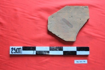 Terbuat dari bahan tanah liat yang dibakar, berbentuk empat persegi panjang, dan berwarna merah bata.Berfungsi sebagai atap. Keadaan benda tidak utuh.