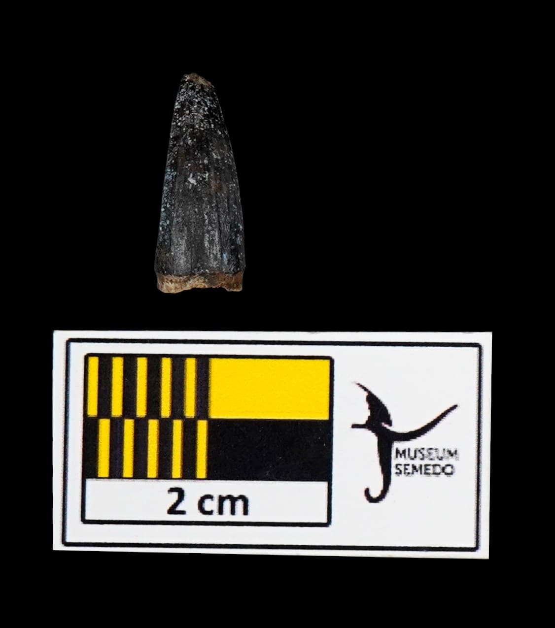 Koleksi merupakan bagian gigi dari buaya. Secara keseluruhan, permukaan koleksi berwarna kehitaman dengan bercak-bercak putih. Bagian akar gigi (root) sudah berada dalam kondisi patah sedangkan bagian tip crown kondisinya masih baik. Pada sisi gigi terdapat carinae yang masih terlihat jelas memanjang dari root sampai ke apex. Pada permukaan gigi juga terdapat guratan-guratan vertikal (apicobasal) yang sejajar.