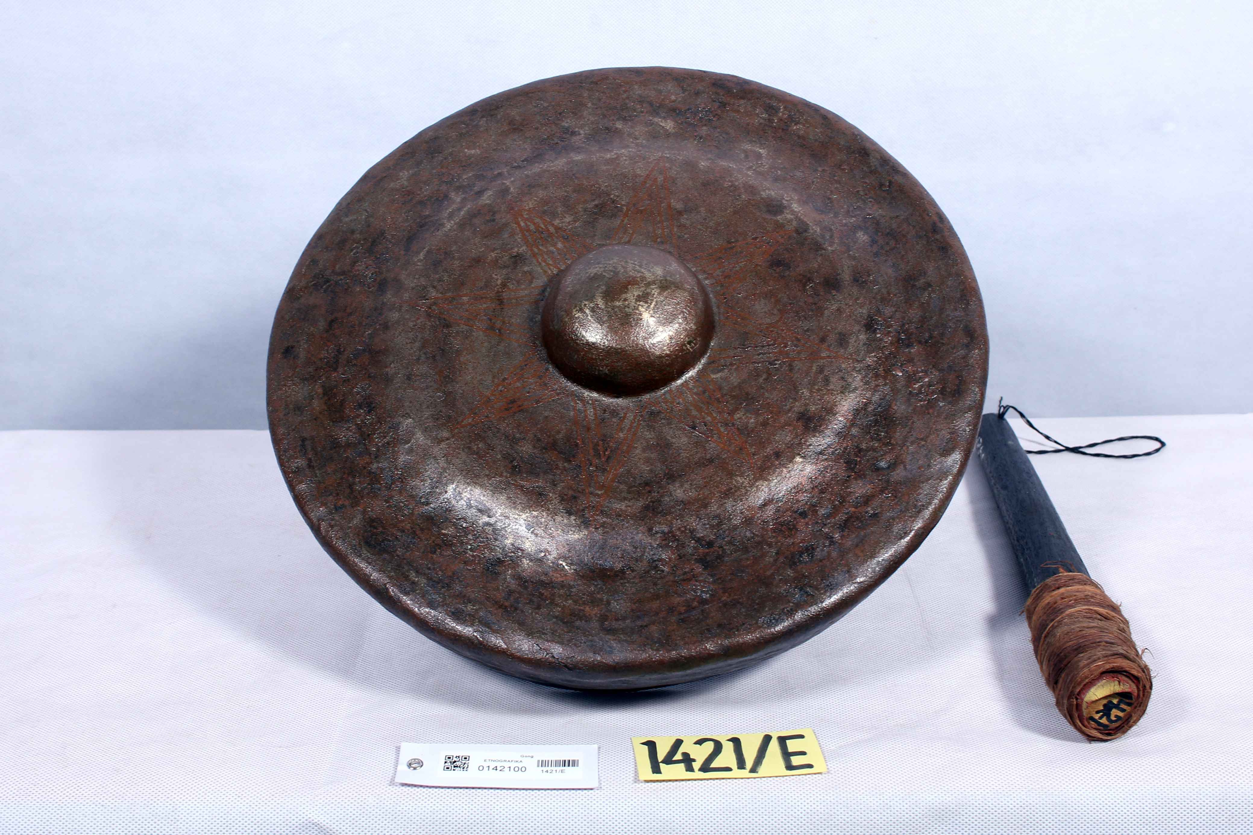 Terbuat dari perunggu, bentuk bulat, bagian tengah bulat menonjol menyerupai bentuk stupa. Gong ini dilengkapi dengan pemukulnya. Gong dibunyikan selama kurang lebih 3 menit untuk memanggil warga kampung yang sedang berada diladang atau sedang bermalam dipondok-pondok ladang supaya segera datang kerumah betang karena ada warga yang meninggal.