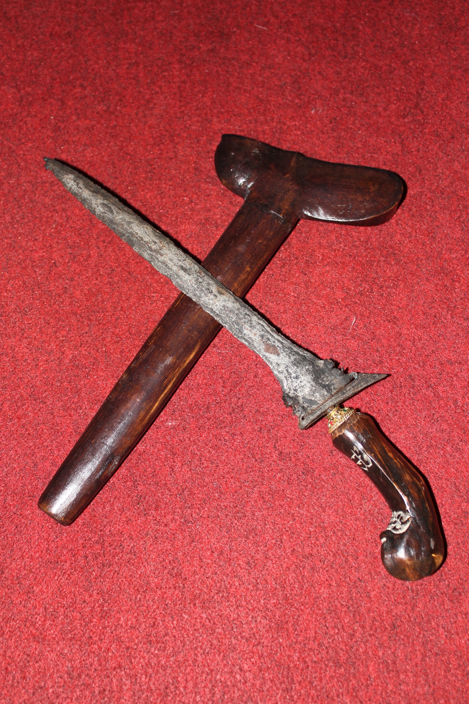 Guci terdiri badan, leher dan bibir .pada bagian badan terdapat pegangan ( Kupingan ) berjumlah 6. terdapat notif pilin berjumlah 2. terdapat motif daun pada badan bagian dasar tidak bergaris.
