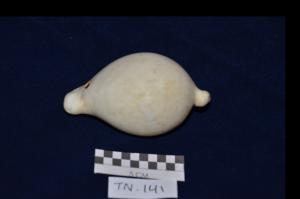 Guci keramik berwarna abu-abu dengan pola hias geometris berupa garis berwarna biru di bagian atas dan bawah serta cap produsen. Tanda cap produsen keramik bertuliskan MEURSING JR. ALBLASSERDAM HOF EN MARINE LEVRANCIER, HOLLAND dalam bingkai berbentuk oval. Benda merupakan wadah penyimpanan yang berasal dari Belanda pada abad XIX.