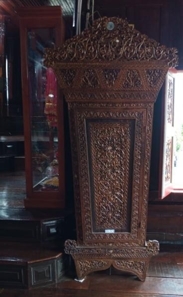 Guci memiliki mulut yang lebar dan empat tangkai, bagian bawah nampak coklat dan di permukaan badannya terdapat glasir hijau. Memiliki tinggi 15 cm, lebar 20 cm, dan tinggi atau tebal 0,7 cm.