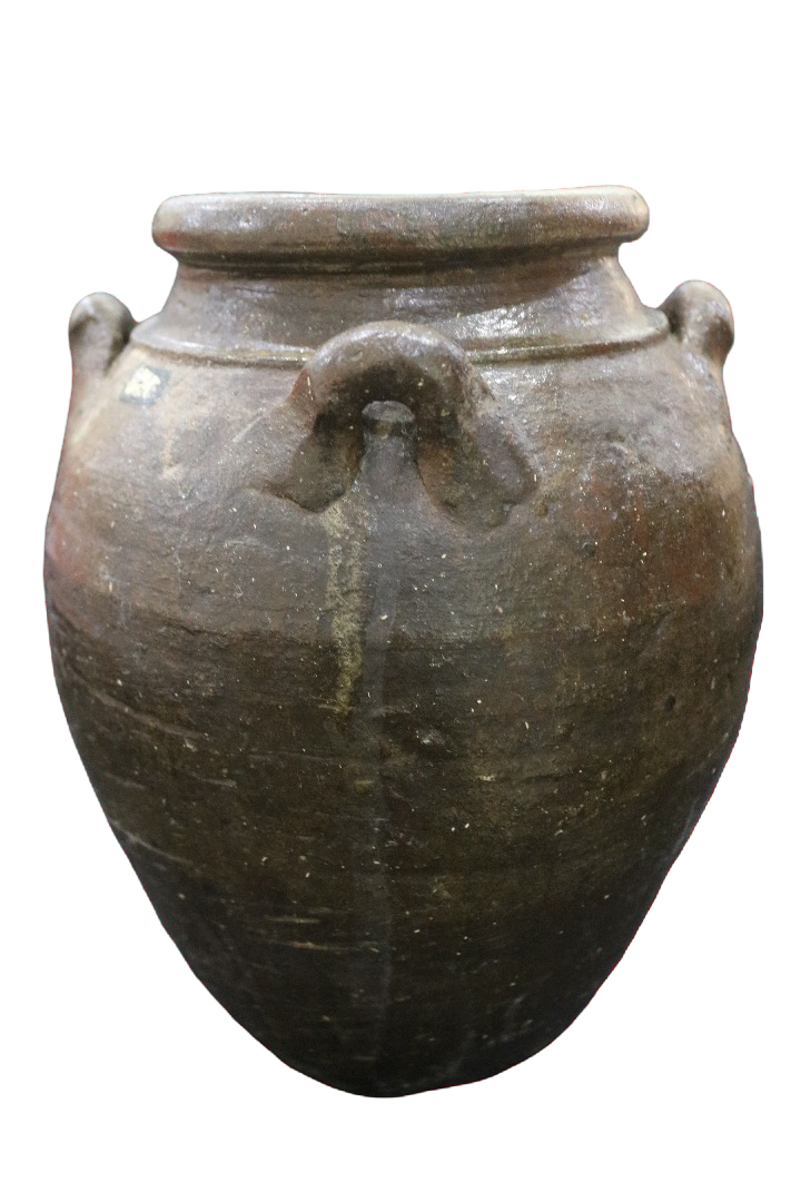 Guci ini terbuat dari tanah liat kaolin yang dilapisi dengan porselin warna merah tua dan berbentuk bujur telur dengan mulut yang tebal. Pada bahagian pundak terdapat 4 (empat)buah kuping yang menyerupai kuping gajah yang melambangkan simbol suatu kerajaan dan bahagian leher terdapat satu garis yang melingkar sebagai hiasan. Fungsi guci ini sebagai wadah. Dalam rumah tangga digunakan untuk menyimpan air minum yang akan dimasak dan bisa juga untuk menyimpang air pencuci kaki sebelum naik ke rumah.