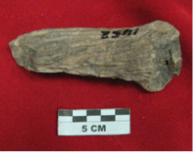 Terbuat dari campuran tanah liat dan batuan halus, bentuk bulat lonjong, berglasir warna abu-abu. Bibir rata, pada bahu terdapat dua buah garis yang didalmnya ada garis-garis lurus dan miring yang sudah pudar berwarna biru kusam. Badan sebagian retak seribu dan dihiasi dengan garis-garis horizontal dan burung hong berwarna biru kusam, dasar bawah rata. Cina, Dinasti Ming abad 16-17 M.
