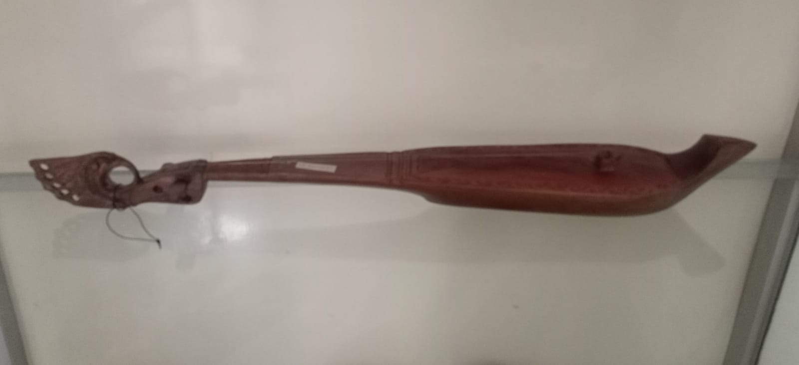 Berbentuk bulat lonjong berglasir warna coklat, bibir membalik keluar, Pada pundak terdapat 6 buah telinga vertikal beralur dengan topeng raksasa. Pada pundak terdapat 6 buah telianga vertikal beralur dengan topeng raksasa. pada badan terdapat motif 2 ekor naga horizontal berurai dan vertikal dan bersisik/bersirip/, sedangkan bagian dalam mulut dan leher berglasir. Digunakan oleh masyarakat suku Dayak di daerah pedalaman untuk pembayar denda adat.