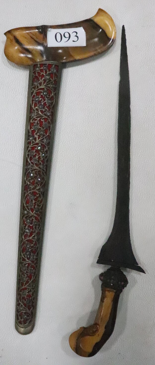 Koleksi ini berbahan dasar kayu dengan warna coklat dengan motif serat kayu. Pada bagian kepala atas terdapat rambut yang terurai lurus sampai punggung, terdapat ukiran persegi dimana itu merupakan bulu, pada bagian jidat terdapat lekukan (berundak) sebanyak 2, selain itu terdapat hiasan kepala berbentuk floral diantara kedua alis yang tebal. Memiliki 2 mata yang melotot, hidung lebar dengan lubang hidung besar, terdapat 3 kerutan dibagian hidung, terdapat kumis besar dibawah hidung, terdapat 2 telinga namun telinga kanan lebih besar. Pada bagian mulut terbuka lebar, hingga terlihat gigi yang berjumlah 6 dengan lidah yang menjukur keluar. Dibawah juluran lidah terdapat ukiran bulu yang mengelilingi area mulut hingga telinga. Memiliki postur leher yang pendek. Koleksi ini memiliki 2 tangan, posisi tangan kanan memegang kepala dan rambut bagian kanan atas, sedangkan posisi tangan kiri memegang bahu, koleksi itu sendiri yang sekaligus bertumpu antara sikut dan lutut kiri. Pada bagian kaki terlihat seperti posisi duduk dengan kaki ditekuk. Bagian badan, terdapat 2 lingkaran yang berupa payudara pada laki-laki, lipatan perut berupa garis sebanyak 4. Koleksi ini memiliki pusar berbentuk lingkaran yang ditengahnya terdapat lubang kecil. Dibawah pusar terdapat 4 garis yang merupakan lipatan perut. Koleksi ini bertumpu atau terlihat seperti duduk disebuah alas yang bertingkat 2. Pada tingkat pertama terdapat motif ragam hias geometris yang mengelilingi alas tingkat pertama, dan bagian atas pada alas pertama terlihat cekung ke arah kaki dan perut patung. Sedangkan pada alas kedua tidak terdapat motif ragam hias.