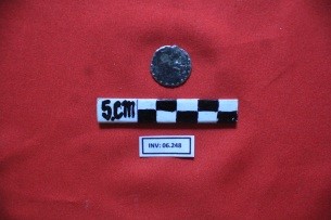 Koleksi ini berbahan dasar kayu dengan warna coklat dan motif alami serat kayu. Pada bagian kepala terdapat ukiran rambut yang terurai terlihat rapi dengan ujung rambut yang lancip hingga bahu. Pada bagian depan diatas jidat terdapat ukiran berupa bulu dengan bentuk lancip. Koleksi ini memiliki anatomi diantaranya; 2 alis yang melengkung tipis, 2 mata yang melotot, hidung yang lebar dan terdapat kerutan hidung hingga lubang hidung besar disertai lekukan hidung samping. Terdapat 2 telinga yang lebar dengan bentuk seperti terbagi menjadi 3 bagian atas dan bawah, bagian telinga terlihat besar dan Tengah terlihat kecil. Pada bagian mulut terbuka lebar dengan bagian bibir atas yang menonjol terlihat 4 buah gigi tongos disertai dengan gusi, dan lidah yang menjulur keluar. Pada bagian samping mulut terdapat rambut yang mengelilingi hingga menutupi leher. Pada bagian dada terdapat motif ragam hias setengah lingkaran. Pada bagian tangan bentuknya ramping dan panjang dengan posisi menyilang ke bawah, pada bagian Tengah terdapat lekukan pada sikut dan lengan atas/bahu. Pada bagian kaki terlihat ramping dan Panjang. Postur tubuh patung secara keseluruhan terlihat slender/rampng/kurus. Pada bagian belakang patung terdapat lipatan yang membentuk sudut lancip dikarenakan pose patung yang sedang jongkok diatas bunga Teratai dan dibawahnya terdapat alas kayu berbentuk oval.