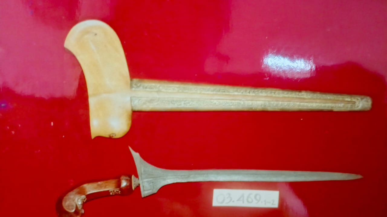 Sehelai Ija Tangkulok (kain Penutup kepala pria) terbuat dari sutera warna merah hati dan kasab emas. Kain tangkulok ini penuh dengan hiasan/sulama kasab emas motif bungong meulu, campli, keupula, delima, pucuk rebung, iris wajik dan tali air. Kain ini biasa digunakan sebagai kain penutup kepala pria ataupun dililitkan paa kupiah meukutop