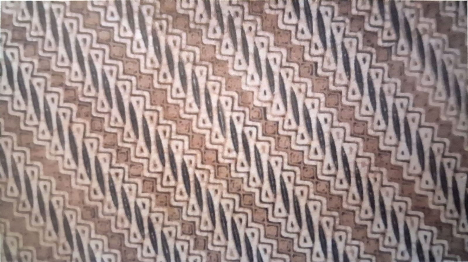 sehelai kain sarung terbuat dari sutra, warna dasar merah anggur (lila) dengan hiasan kasab motif garis-garis dan buah mangga, pada bagian kepala kain