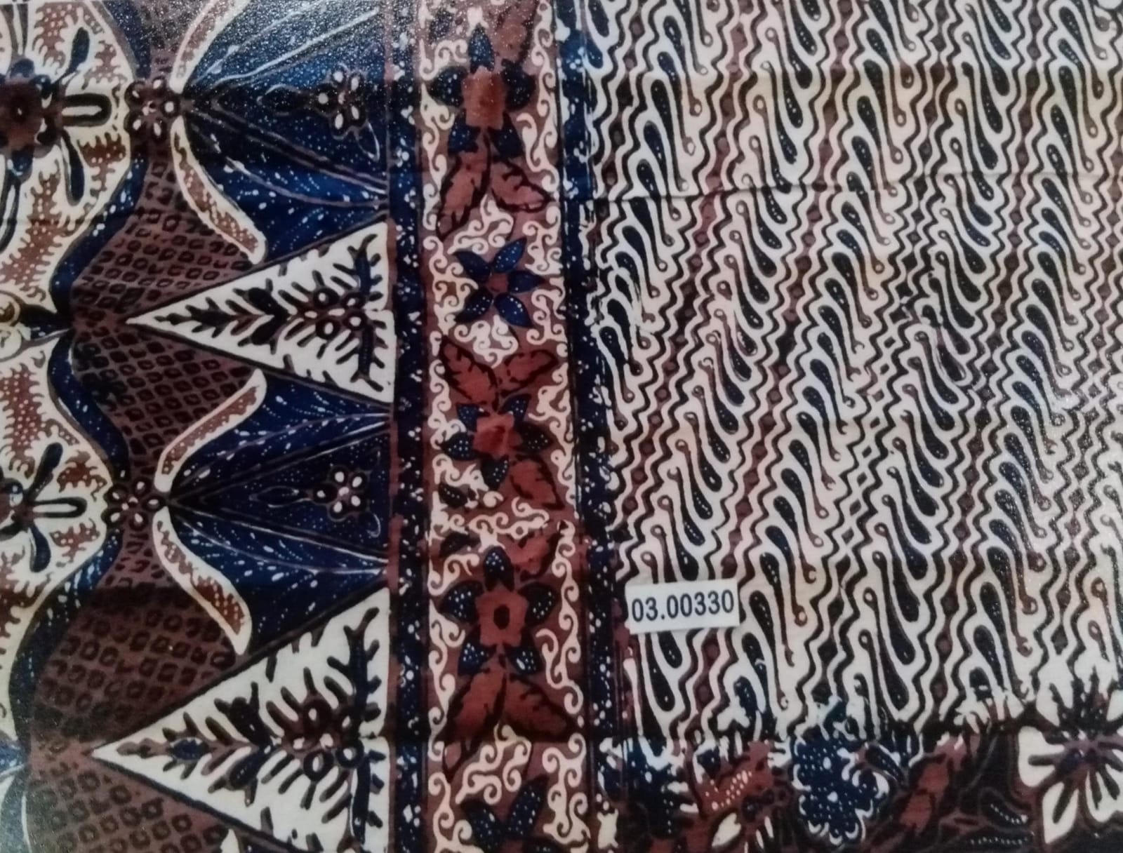 Terbuat dari benang katun dan benang perak yang dikerjakan dengan tehnik songket. Seluruh badan kain bermotif kotak-kotak berwarna merah jambu dan hijau yang diselingi kotak-kotak warna lebih muda. Kepala kain dipenuhi dengan benang perak berbentuk garis-garis vertikal.
