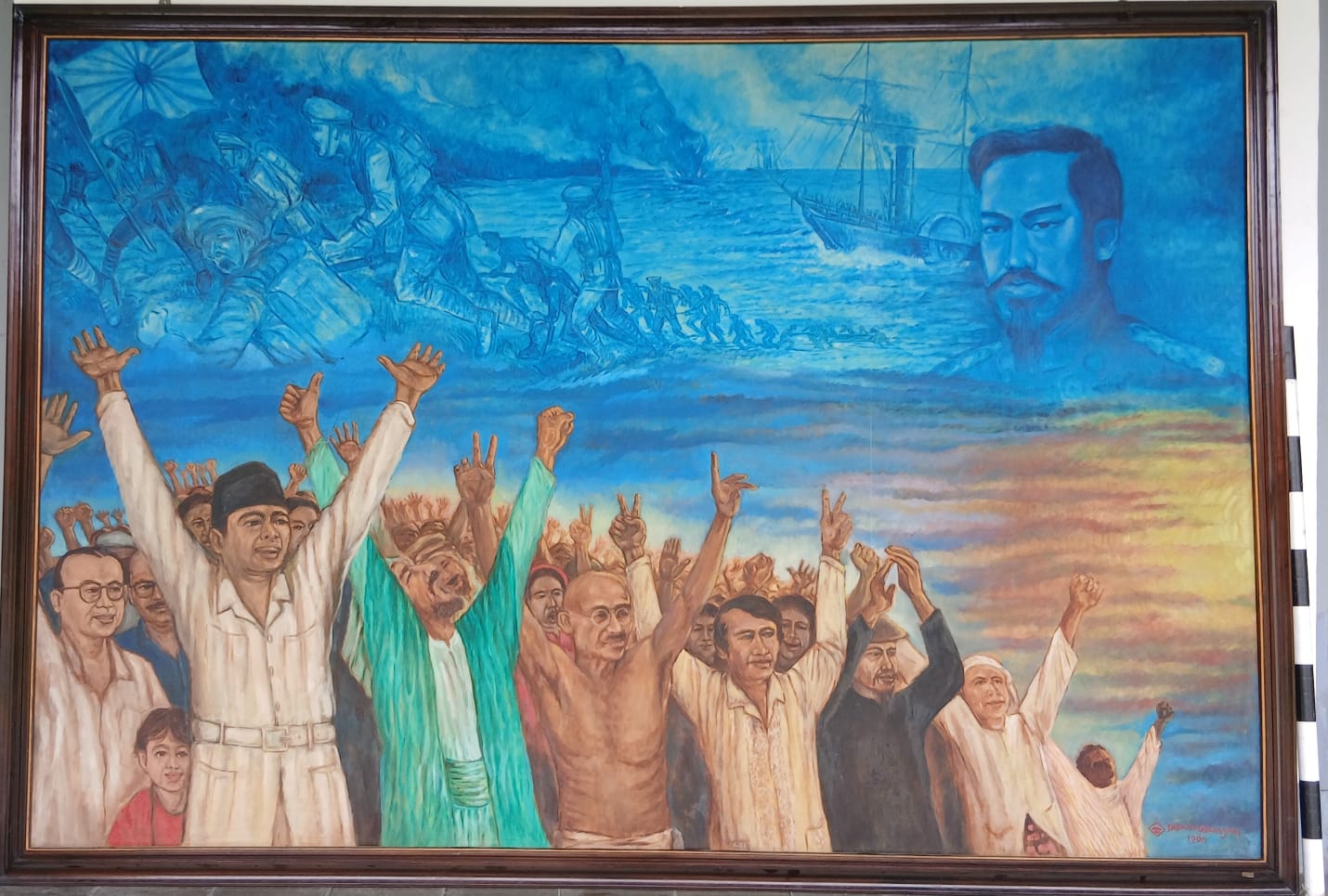 Kain tenun ini didasari warna oranye disongket dengan benang perak dan aplikasi benang katun warna merah muda, merah manggis, coklat, biru, hijau dan ungu serta pernik-pernik perak. Kepala kain bermotif tumpal yang saling berhadapan dari benang perak dan di dalamnya dipenuhi bentuk kait berangkai dan sulaman benang katun warna biru sejajar dengan pinggiran tumpal. Di antara bentuk tumpal diisi dengan rangkaian pernikpernik perak bermotif pilin dan Iingkaran dengan warna merah manggis. Sedangkan tampuk manggis yang berada di dalam lingkaran pernik-pernik dihiasi dengan sulaman benang warna ungu dan merah muda berbentuk palang. Pada bagian tengah kepala kain, dipenuhi ragam hias segi empat belah ketupat dari pernik-pernik yang didalamnya diisi sulaman ragam hias tampuk manggis dari benang warna merah manggis dan biru dan di pinggirnya diberi benang perak. Pada tampuk manggis songketan benang perak didalamnya diisi dengan sulaman benang warna hijau berbentuk bintang bercadit delapan. Kedua sisi kepala kain dipenuhi dengan ragam hias pola anyaman dari benang perak dan di lajur tengah diisi sulaman benang warna merah muda dan ungu bermotif pinggiran awan (huruf Z). Badan kain tenun ini ditaburi sulaman benang perak dan katun dan hiasan pernik-pernik membentuk ragam hias rangkaian daun, belahan sulur daun warna hijau, merah muda dan coklat, bunga rozet wama ungu, coklat, bundaran subang warna coklat, kuning dan merah muda. Bagian kaki kain diisi dengan sulaman bcnang warna hijau, merah muda, biru, kuning dan ungu yang membentuk ragam hias bunga yang dipinggirnya diberi benang perak. Keseluruhan kain tenun ini dihiasi pula dengan pernik-pernik perak. Kain sarung ini hanya digunakan sebagai pakaian pengantin wanita masyarakat Melayu