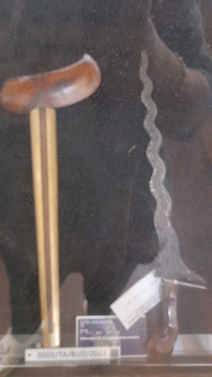 Terbuat dari benang kapas/katun, bentuk persegi panjang, kedua ujungnya berumbai. berhiaskan motif manusia/orang dan pohon hayat warna hitam, putih dan merah kusam.