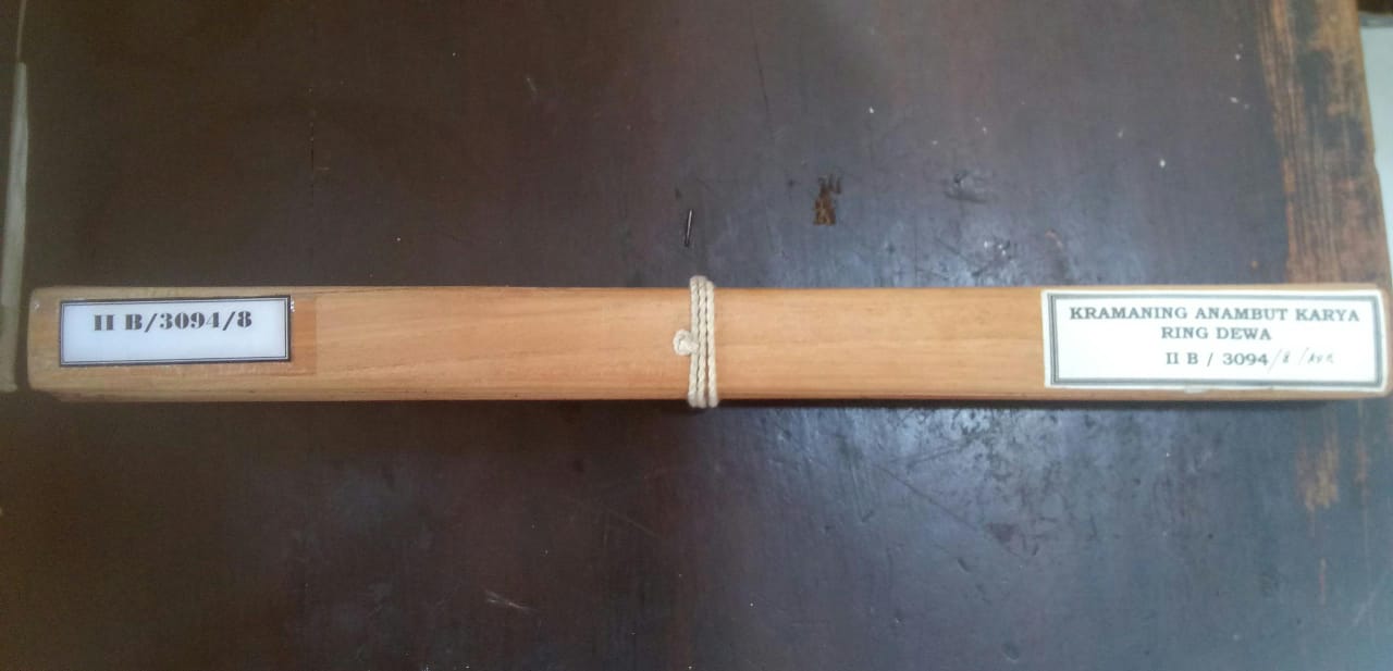 Kain batik bahan primisima. Warna latar coklat, warna pelengkap biru dan kuning. Motif utama kembang kenikir, parang, kawung, kembang dalam bujur sangkar yang diagonal segitiga