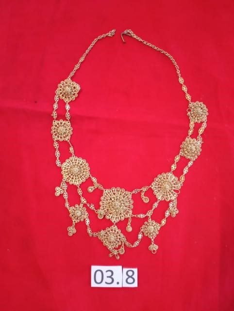 Pinyaram atau kue cucur adalah sejenis makanan tradisional Minangkabau yang terbuat dari tepung beras dan gula atau saka dan digoreng. Dari bentuk pinyaram yang bundar inilah pandai emas menciptakan motif kalung ini. Terbuat dari rangkaian kawat-kawat dari temabga yang dibentuk melingkar hingga menjadi bundar dan bagian tengahnya menonjol berbentuk stupa. Seuntai kalung pinyaram ini terdiri dari 10 bulatan, satu yang besar dibagian tengah /bawah kemudian dirangkai dengan bulatan yang lebih kecil sehingga berbentuk seuntai kalung yang bentuknya lebih ramai. Kemudian kalung ini disepuh emas sehingga kesannya lebih mewah lagi seperti kalung emas. Kalung pinyaram ini dipakai oleh Pengantin wanita dan bundo kanduang sebagai kelengkapan pakaian adat di Minaangkabau.