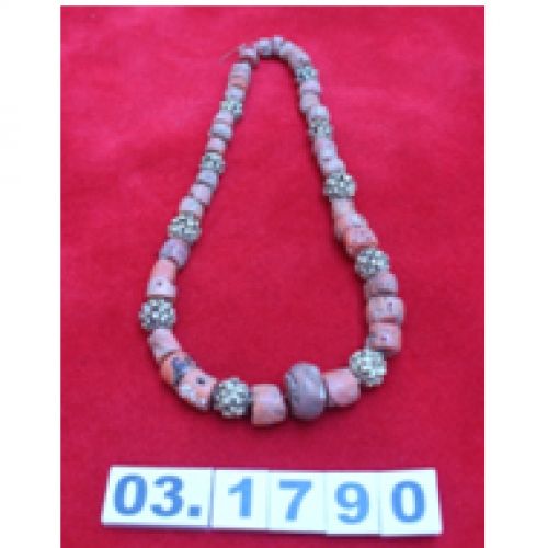 Kalung ini terbuat dari emas. Terdiri dari rangkaian 38 buah manik ("boh agok") rantai juga dari emas.