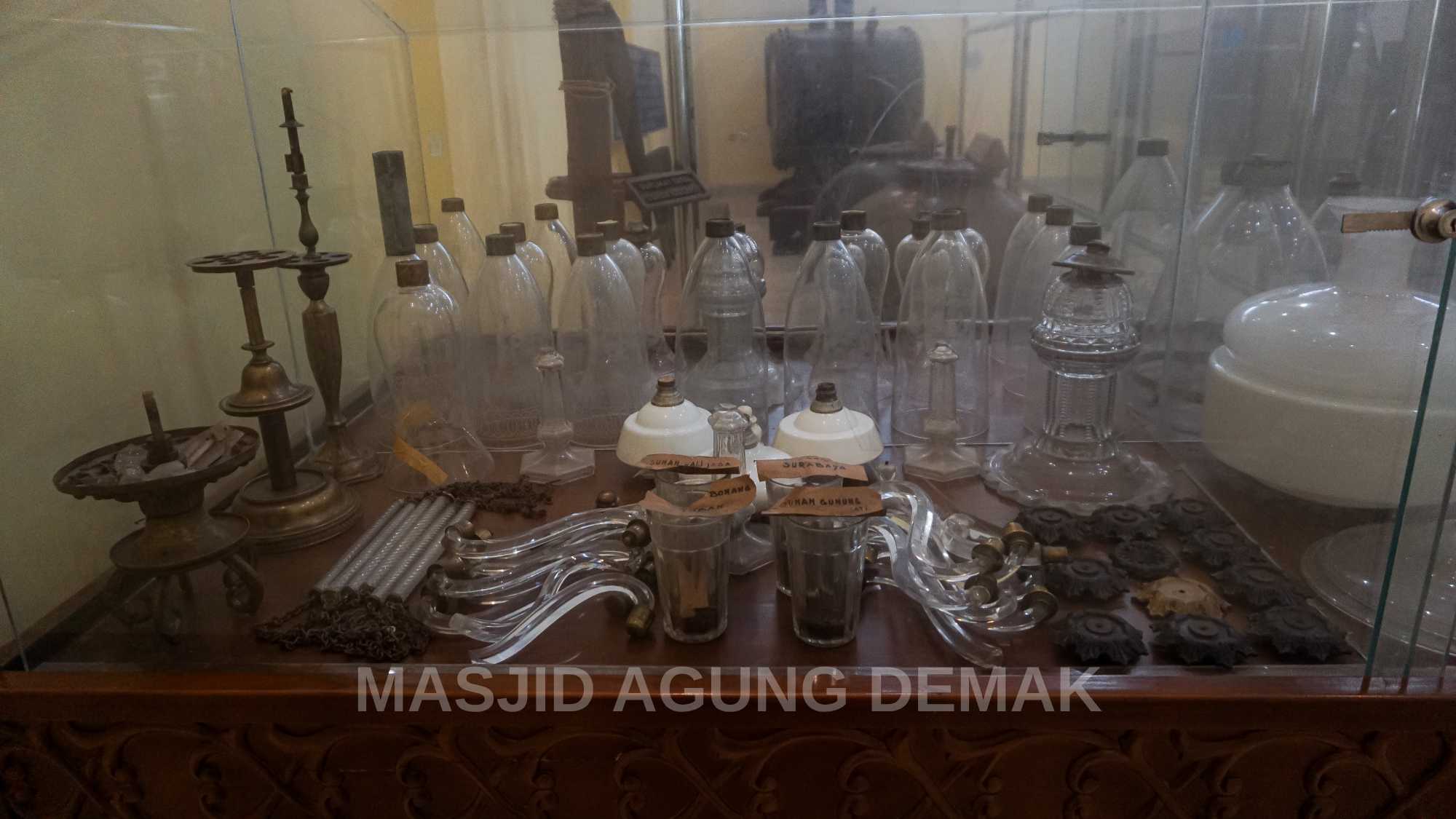 Kap Lampu, Cagak Lampu , Mangkok, Gelas merupakan peninggalan yang ditinggalkan oleh Pakubuwono ke-1 pada tahun 1710 M. Lampu yang terdapat di Museum Masjid Agung Demak, merupakan artefak sejarah yang memiliki fungsi sekaligus simbolis. Lampu ini terutama merupakan jenis lampu minyak yang digunakan untuk penerangan, dan fungsinya adalah untuk memberikan cahaya di tempat yang remang-remang. Selain itu, lampu ini dianggap sebagai simbol pencapaian teknologi dan budaya di masa lalu. Prasasti dan tahun pembuatannya menunjukkan bahwa lampu ini dibuat pada masa pemerintahan Paku Buwono I, penguasa pertama Kesultanan Mataram. Tanggal yang tertera pada lampu hias, “1710,” juga memberikan informasi sejarah yang berharga, karena menunjukkan bahwa artefak tersebut dibuat dan digunakan pada kurun waktu tersebut. Hal ini membantu menentukan tanggal benda tersebut dan menempatkannya dalam konteks sejarah Mataram dan Masjid Agung Demak.