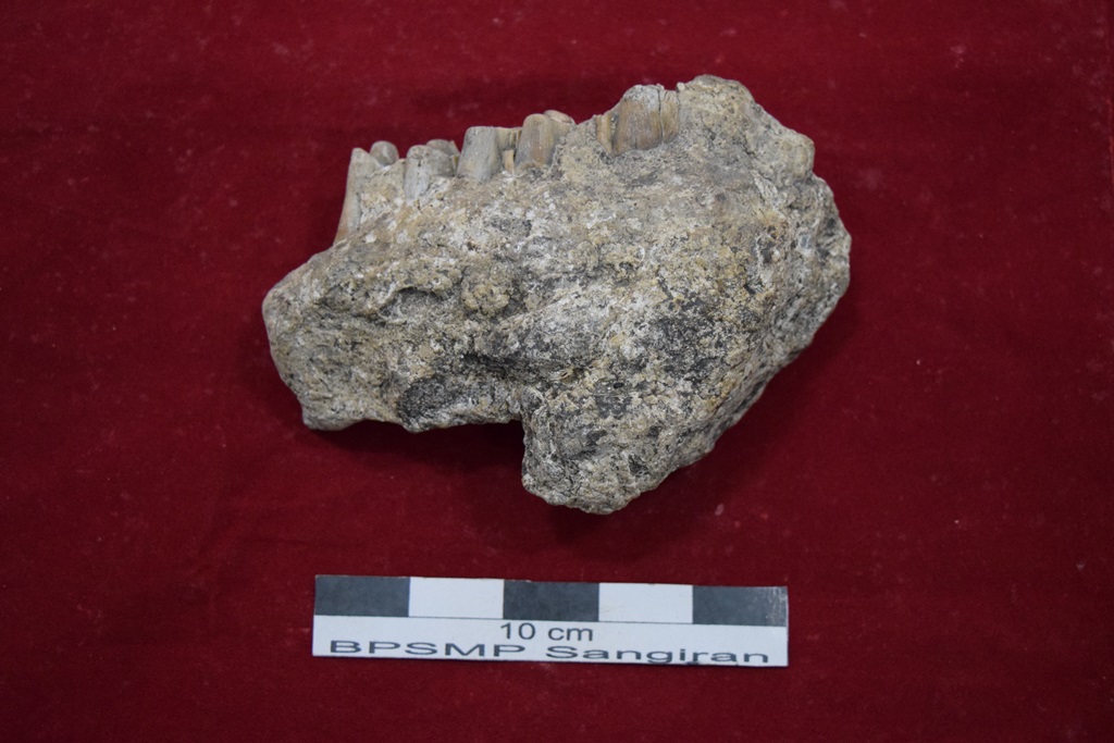 Koleksi merupakan kapak penetak yang dibuat dengan bahan batu lempung berwarna coklat kekuningan. Secara umum, koleksi ini berbentu segitiga yang meruncing. Pememangkasan dilakukan secara bifasial bilateral dengan bagian proksimal dilakukan pengerjaan lanjutan sehingga cenderung tajam. Pada permukaannya terdapat jejak pemangkasan yang melebar mengarah pada sisi lateral dan distal sehingga bagian tersebut cukup tajam.