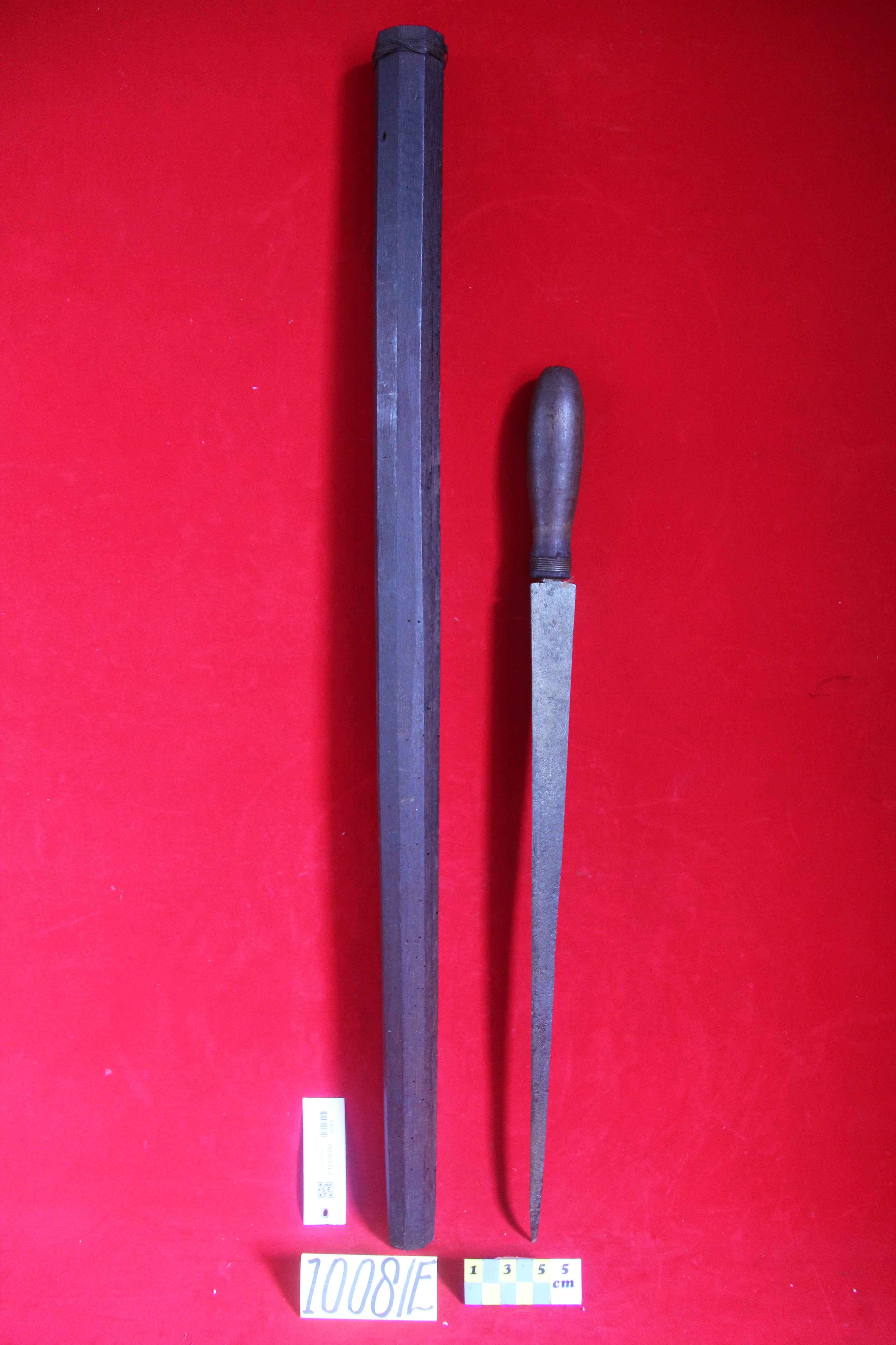 Koleksi merupakan kapak perimbas berbahan dasar koral kersikan berwarna coklat kekuningan. Pemangkasan dilakukan secara monofasial sedangkan pada sisi yang tidak dipangkas masih menyisakan korteks. Bagian proksimal cenderung membulat dengan pemangkasan yang sedikit. Pada bagian distal berbentuk meruncing dengan pemangkasan secara bifasial yang difokuskan pada bagian distal. Salah satu bagian lateral dipangkas sehingga membentuk tajaman sedangkan sisi yang lain cenderung berbentuk datar.