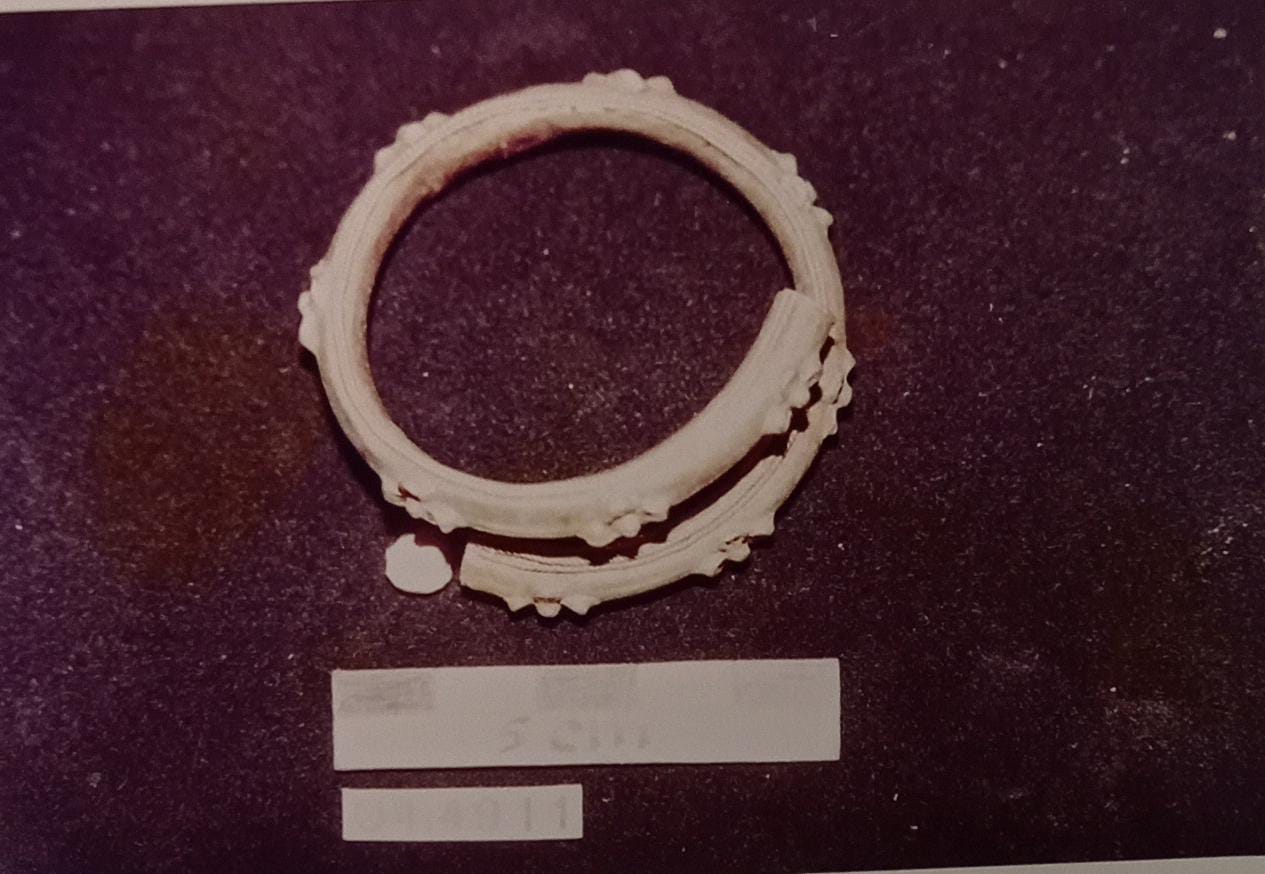 Sebuah kapak persegi terbuat dari batu, warna kelabu kehitaman. Bentuk empat persegi bagian ujung lebih besar dari bagian pangkal mata telah diasah hingga pipih dan tajam, ada bagian yang rusak. Diperkirakan bagian peninggalan zaman prasejarah. Digunakan sebagai alat menebang kayu.