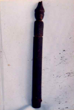 Terbuat dari perunggu, warna kuning kehitaman, bnetuk badan agak langsing, kedua ujung mata melengkung ke atas dan mempunyai ketajaman yang monofacial. Bagian pangkal berongga hingga bagian dalam mata tajaman, digunakan sebagai alat utuk mengerjakan kayu pada masa neolitik.